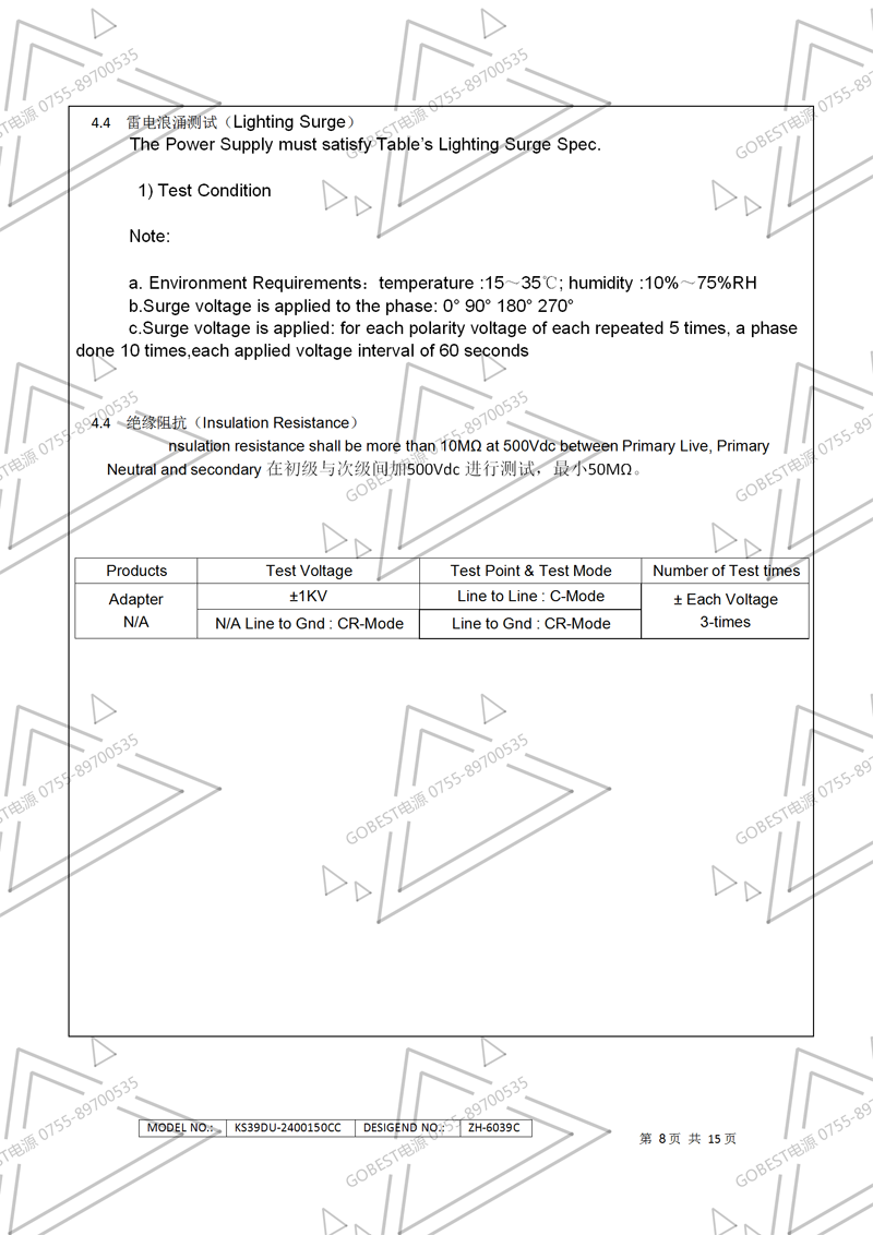 24V1.5A電源適配器規(guī)格書(國標插墻式)