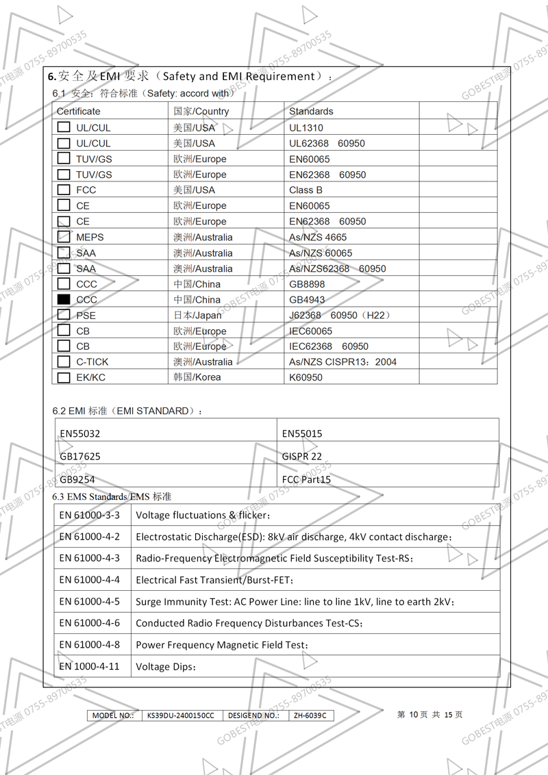 12V10A電源適配器規(guī)格書