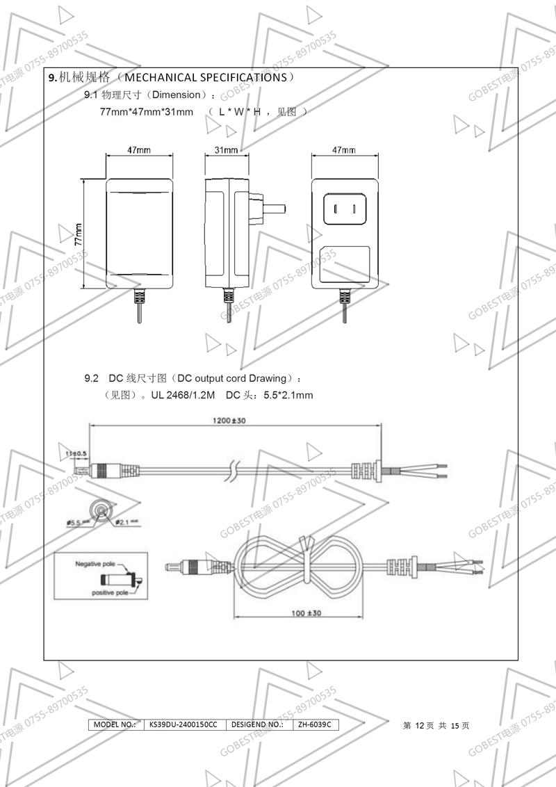 12V1.25A電源適配器規(guī)格書(桌面式)