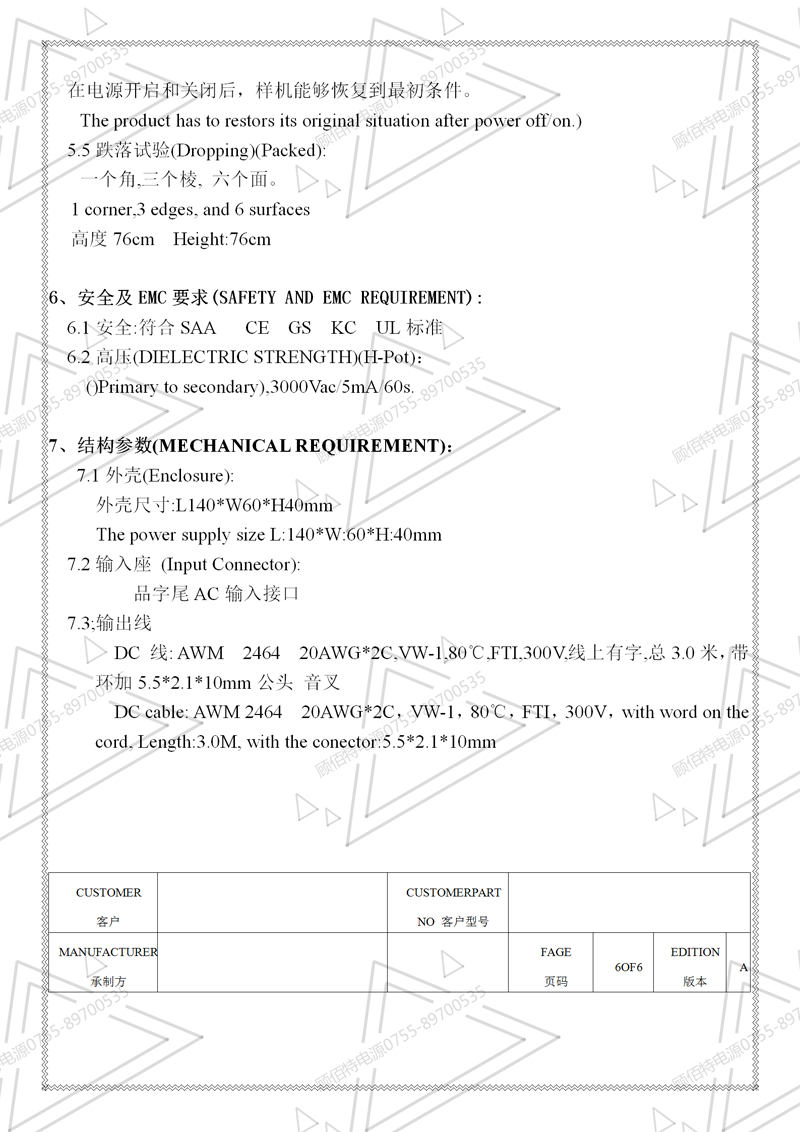 24V6A電源適配器帶PFC電路規格書(新模具)